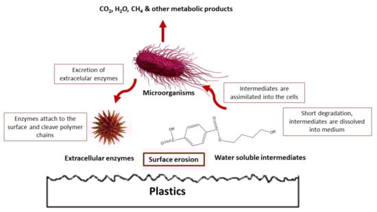 - Lucas, N.; Bienaime, C.; Belloy, C.; Queneudec, M.; Silvestre, F.; Nava-Saucedo, J.-E. Polymer biodegradation: Mechanisms and estimation techniques—A review. Chemosphere 2008, 73, 429–442. [Google Scholar] [CrossRef]