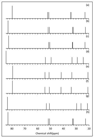 3.3. Simulation of the 13C NMR Spectra (sp3 Hybridised Carbons)