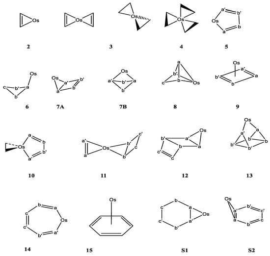 The species studied here include the Os(+) analogs of the C2nH2n-Fe(+) structures from reference [16]; that is, 2–15 as shown in Figure 1.