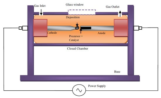 - Kim, H.H.; Kim, H.J. Preparation of carbon nanotubes by DC arc discharge process under reduced pressure in an air atmosphere. Mater. Sci. Eng. B 2006, 133, 241–244. [Google Scholar] [CrossRef]