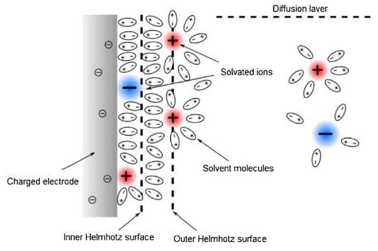 - Kisza, A. The capacitance of the diffuse layer of electric double layer of electrodes in molten salts. Electrochim. Acta 2005, 51, 2315–2321. [Google Scholar] [CrossRef]
