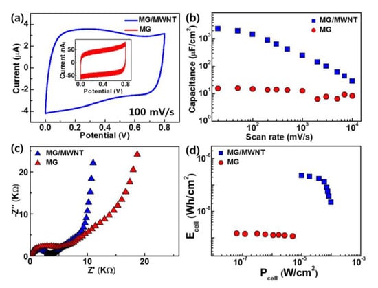 - Yun, J.; Kim, D.; Lee, G.; Ha, J.S. All-solid-state flexible micro-supercapacitor arrays with patterned graphene/MWNT electrodes. Carbon 2014, 79, 156–164. [Google Scholar] [CrossRef]