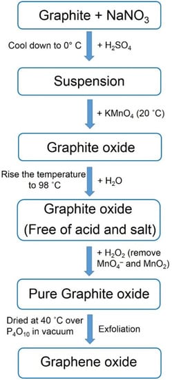 - Hummers, W.S.; Offeman, R.E. Preparation of Graphitic Oxide. J. Am. Chem. Soc. 1958, 80, 1339. [Google Scholar] [CrossRef]