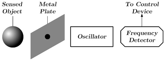 A capacitive sensor functions similarly to a standard capacitor. A metal plate on the detecting face of the sensor is electrically coupled to an oscillator circuit, while the target to be detected serves as the second plate of the capacitor. In contrast to inductive sensors, which generate a magnetic field, capacitive sensors generate an electrostatic field. External capacitance between the internal sensor plate and target plate contributes to the oscillator tank impedance. As the target gets closer to the sensors, the increase of the oscillator tank capacitance decreases the oscillation frequency until it hits a threshold value and trigger the output. Figure 2 shows the schematic of a capacitive proximity sensor.