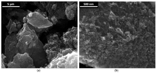 Firstly, the NDS powder was investigated “as it is” using SEM. Selected results of the microscopy study are presented in