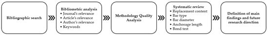 - Carbon steel bars with a ribbed surface were the most employed in the selected bibliography and they seem to be the best option when employed in RC structures built with CDW-concrete. Furthermore, diameters between 8 mm and 30 mm were employed in the studies, with bars with diameters smaller than 8 mm being employed in only two articles. This wide range of diameters led to varied anchorage lengths used in pull-out tests, but the influence of this parameter on steel–concrete bonding still needs to be better understood. This topic can be used for further research;