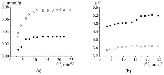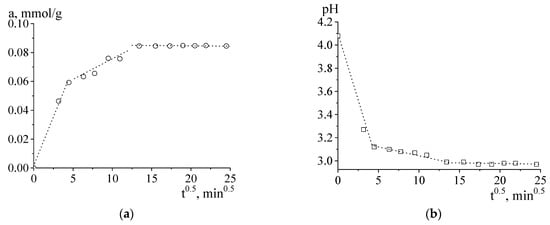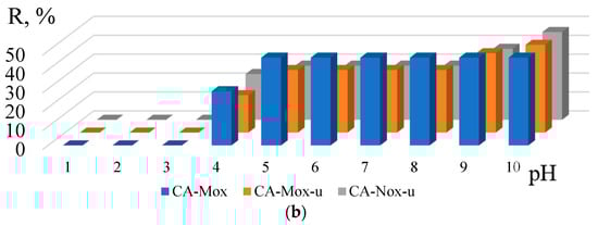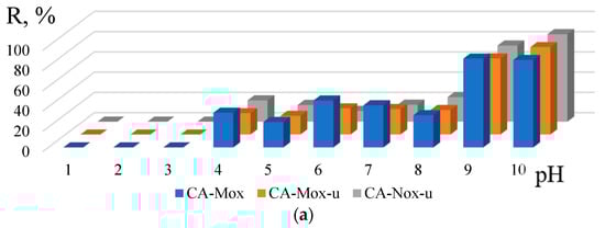 - The interval of pH 3 ÷ 5. In this pH interval, the oxidized activated carbons adsorb metal ions by ion exchange and the formation of metal–ligand complexes on the surface (Figure 10).