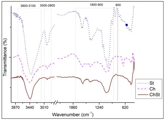 3.6. Characterization of the Chitosan–Starch (ChSt) Membranes via FTIR