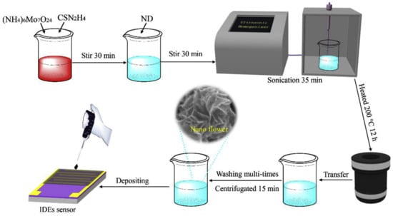 Fabrication route of MoS2/ND nanocomposite via an easy hydrothermal synthesis method [106].
