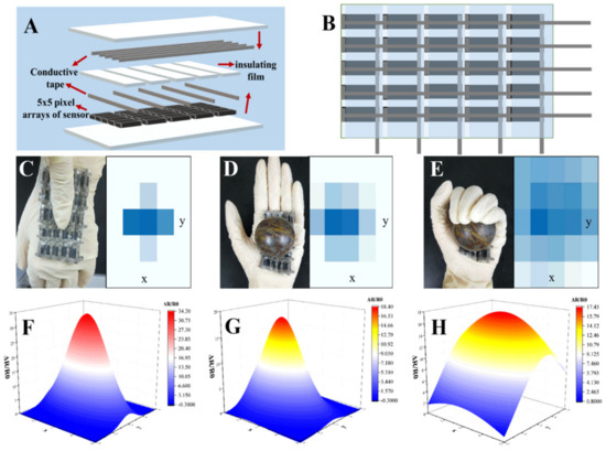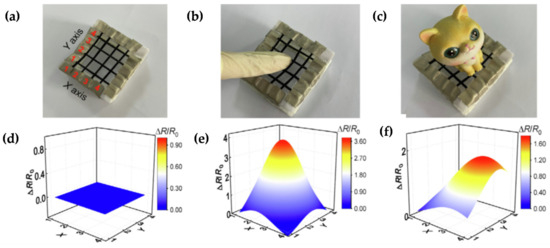 - The sensitivity of the composite sensor is expressed as Equation (4) [97].where P is the applied pressure, the relative resistance ∆I (∆R) is defined as |I(R) − I0 (R0)|, where I0 (R0) is the initial electric current (resistance) and I (R) represents the real-time electric current (resistances) under various deformations.S = ∆I/I0P (∆R/R0P)