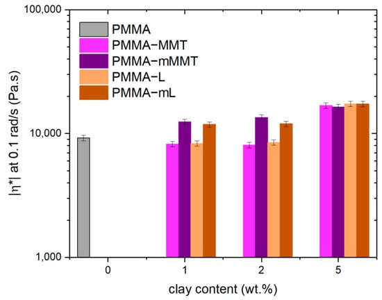 3.3. Effect of Smectic Clays on Shear Viscosity