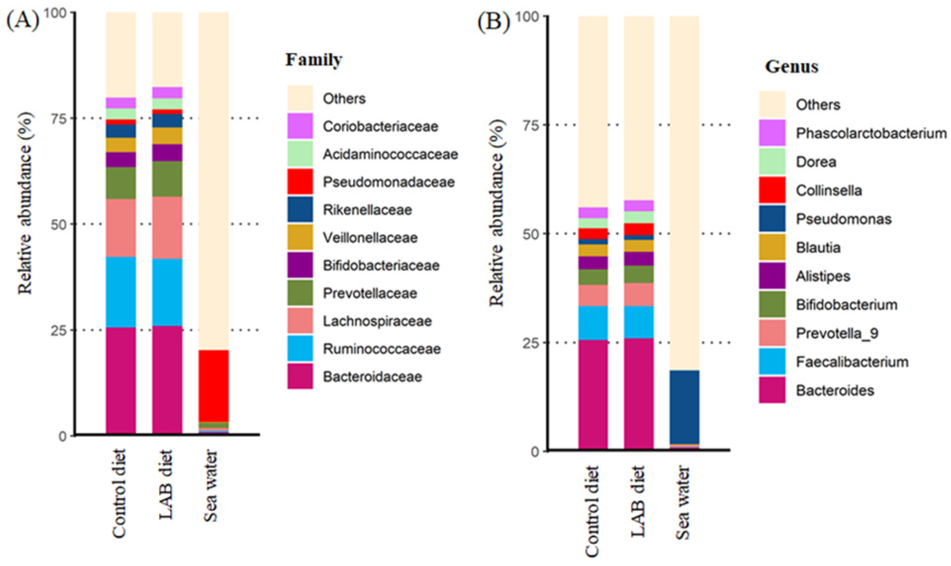 3.4. Effect of LAB-Fermented Feed on Intestinal Microbiota in Fish