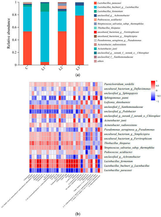 3.3.2. Analysis of Microbial Community and Metabolites During Lactic Acid Bacteria Fermentation