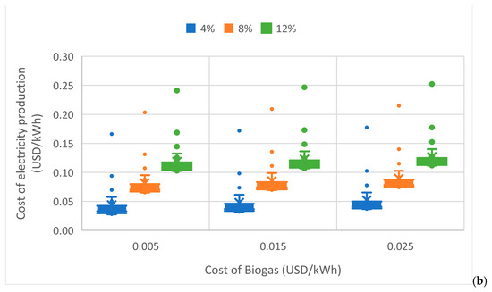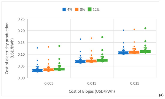 | Cost of bioelectricity produced by the motor/generator set [USD/kWh] | |