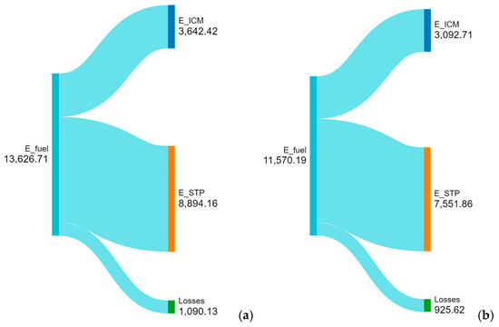 Two plants were selected from the state of São Paulo. The first one is Usina São Manoel, located in the interior of the state, in the municipality of the same name, which, in the 2021/2022 harvest, registered a production of 132,202.00 m3 of ethanol [34]. The second plant is the São Jose da Estiva plant, located in the municipality of Novo Horizonte, also in the interior of São Paulo, which, in the 2022/2023 harvest, registered an ethanol production of 155,700.00 m3 [35]. With each ethanol production value, it is possible to conduct the same calculations that were made previously, using the conversion factors explained in Section 2.2 (1 m3 de ethanol × 10 m3 biogas) it is possible to obtain the biogas flow rate for both plants, results are shown in Table 5.