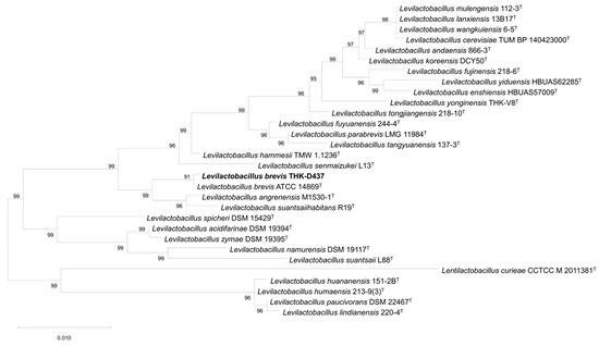 2.2. Identification of Levilactobacillus brevis THK-D437