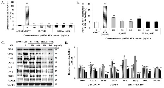 3.2. Inflammatory Effect in LPS-Induced Raw264.7 Cells