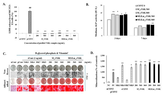 Chicago/Turabian StyleSim, Yejin, Hyun-Sol Jo, Choong-Gon Kim, Young-Eun Cho, Jungwoo Yang, and Sun-Mee Hong. 2024. "Anti-Inflammatory and Osteogenic Effects of Vitamin K from Sargassum fulvellum Fermented by Lactococcus lactis KCCM12759P and Leuconostoc mesenteroides KCCM12756P" Fermentation 10, no. 11: 569. https://doi.org/10.3390/fermentation10110569