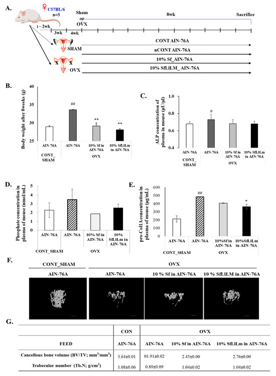 3.4. Effects of Sf and SfLlLm in OVX Mice