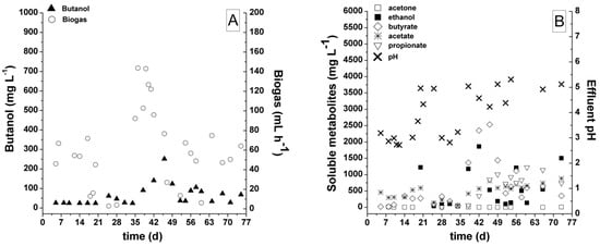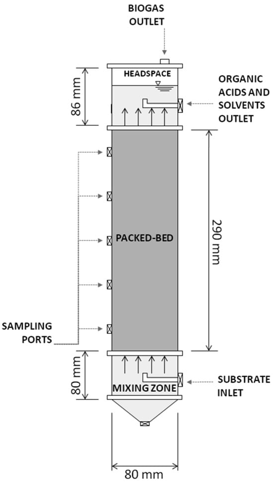 - Leite, J.A.C.; Fernandes, B.S.; Pozzi, E.; Barboza, M.; Zaiat, M. Application of an anaerobic packed-bed bioreactor for the production of hydrogen and organic acids. Int. J. Hydrogen Energy 2008, 33, 579–586. Available online: https://www.sciencedirect.com/science/article/pii/S0360319907005927 (accessed on 13 January 2024). [CrossRef]