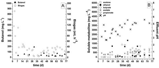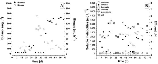 - Hüsemann, M.H.; Papoutsakis, E.T. Solventogenesis in Clostridium acetobutylicum fermentations related to carboxylic acid and proton concentrations. Biotechnol. Bioeng. 1988, 32, 843–852. Available online: http://europepmc.org/abstract/MED/18587795 (accessed on 2 July 2022). [CrossRef]