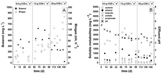 | 6.5 g COD L−1 d−1 | 13 g COD L−1 d−1 | 26 g COD L−1 d−1 | ||||