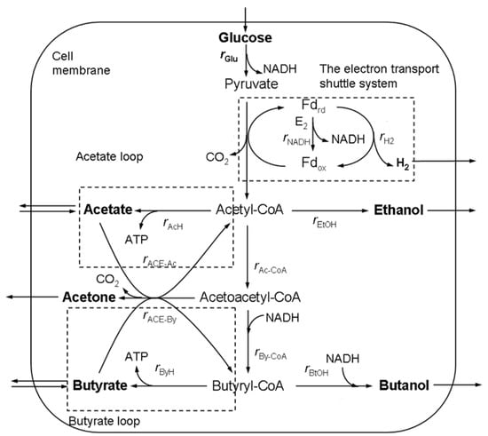- Terracciano, J.S.; Kashket, E.R. Intracellular conditions required for initiation of solvent production by Clostridium acetobutylicum. Appl. Environ. Microbiol. 1986, 52, 86–91. [Google Scholar] [CrossRef]