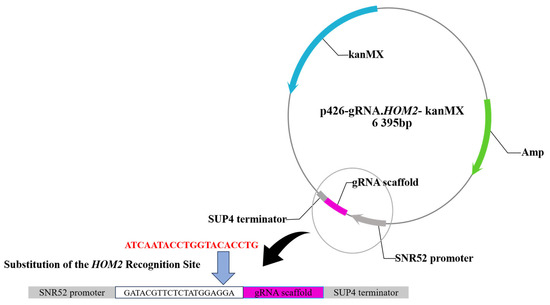 The recombinant plasmid p426-gRNA-HOM2-kanMX was successfully constructed following the method described in Section 2.2, as shown in Figure 2 [14].