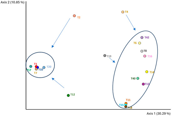 | T40 | 3.70 | 17.15 ± 0.08 b | 1210 ± 81 ab | 108 ± 90 c | 9.14 ± 0.14 ab | 5.48 ± 0.17 d |