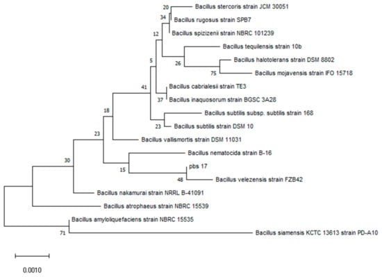 Phylogenetic tree of strain PBS-17 based on the 16sRNA gene sequence.