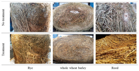- Kim, B.W.; Kim, G.S.; Sung, K.I. Effect of lactic acid bacteria and formic acid on the silage quality of whole crop rice at different maturity. J. Korean Grassl. Sci. 2004, 24, 61–70. [Google Scholar]