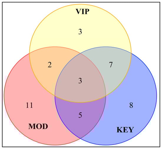 Venn diagram of key and modifying aroma and volatile components with VIP > 1.