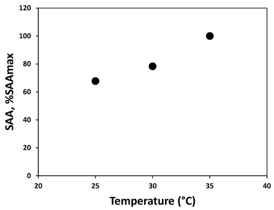 In the temperature range of 25–35 °C, SAA follows an increasing trend, supporting earlier reports. Temperature selection can be adjusted to enhance SAA in specific cases.