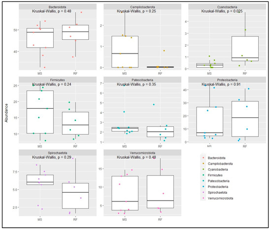 - McMurdie, P.J.; Holmes, S. Phyloseq: An R Package for Reproducible Interactive Analysis and Graphics of Microbiome Census Data. PLoS ONE 2013, 8, e61217. [Google Scholar] [CrossRef]