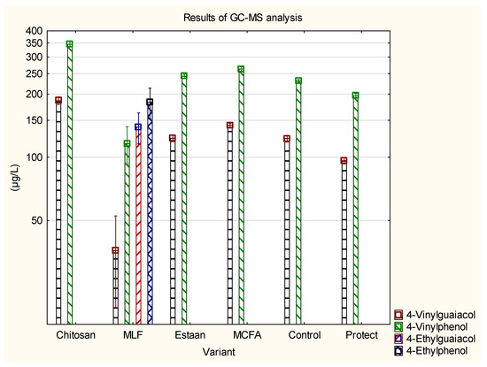 Results of GC-MS analysis (4-vinylguaiacol; 4-vinylphenol; 4-ethylquaiacol; 4-ethylphenol). Detailed results are available in Appendix A (Table A1).