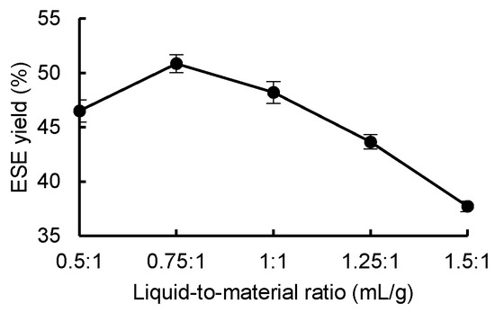 Effect of liquid-to-material ratio on yield of ESE. ESE: ethanol-soluble extract.