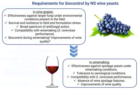 Figure 2 summarises the requirements for biocontrol exerted by non-Saccharomyces wine yeasts in winemaking.