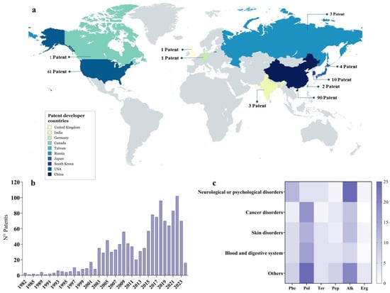 Martinez-Burgos WJ, Montes Montes E, Pozzan R, Serra JL, Torres DO, Manzoki MC, Vieira RL, dos Reis GA, Rodrigues C, Karp SG, et al. Bioactive Compounds Produced by Macromycetes for Application in the Pharmaceutical Sector: Patents and Products. Fermentation. 2024; 10(6):275. https://doi.org/10.3390/fermentation10060275