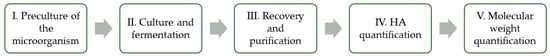 The MPHA process consists of five main steps, as shown in Figure 3. These steps range from propagating the HA-producing bacteria to HA quantification and characterization methods.