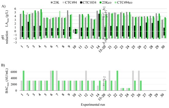 - Aasen, I.M.; Møretrø, T.; Katla, T.; Axelsson, L.; Storrø, I. Influence of Complex Nutrients, Temperature and PH on Bacteriocin Production by Lactobacillus sakei CCUG 42687. Appl. Microbiol. Biotechnol. 2000, 53, 159–166. [Google Scholar] [CrossRef] [PubMed]