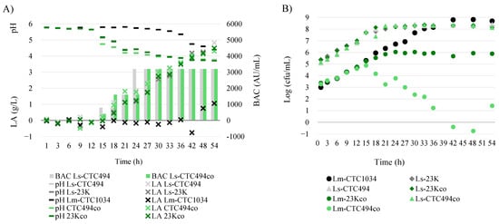 - Pleasants, A.B.; Soboleva, T.K.; Dykes, G.A.; Jones, R.J.; Filippov, A.E. Modelling of the Growth of Populations of Listeria monocytogenes and a Bacteriocin-Producing Strain of Lactobacillus in Pure and Mixed Cultures. Food Microbiol. 2001, 18, 605–615. [Google Scholar] [CrossRef][Green Version]