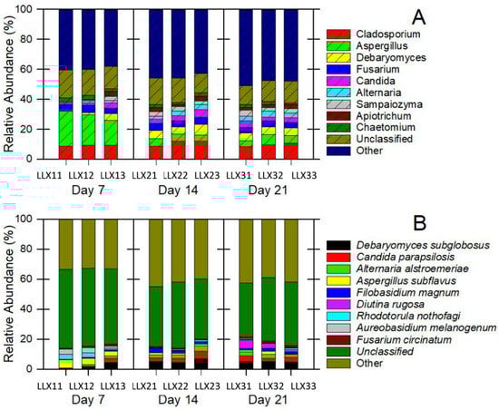 Aspergillus decreased to an average of 4.7%. In LLX3, the relative abundances of