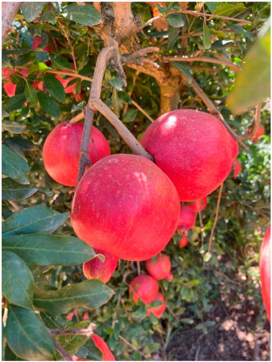 Globally, India is the world’s leading pomegranate producer, surpassing other producing countries in terms of both cultivated area and production, followed by Iran. According to [7], India produces nearly 2.8 million tons of pomegranate on 220,000 ha, making it the world’s leading pomegranate producer. Iran is ranked second in world pomegranate production with a total production of 915,000 tons and a cultivation area of 90,000 ha. Despite India and Iran being the two largest producers of pomegranate, respectively, only 7% and 1.5% of the total production are exported. Turkey, Egypt, and India are the world’s largest exporters of pomegranate fruit with a total volume of 155,189 tons, 127,447 tons, and 67,891 tons, respectively [6].