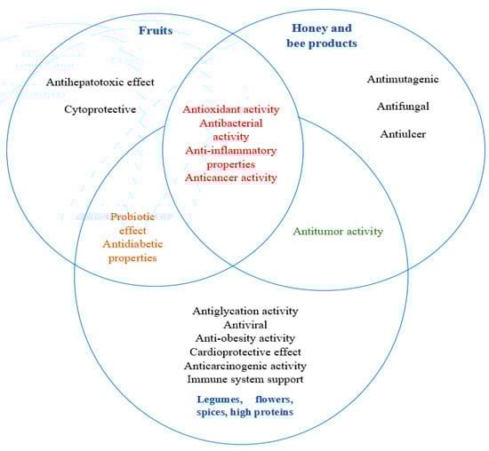 Natural functional ingredients, including bee products (honey, propolis, pollen, and royal jelly), fruits (strawberry, banana, blueberry, aronia, papaya, mango, watermelon, cantaloupe, kaki, and apple), and hibiscus, are recognised for their abundant reserves of bioactive compounds with potential health benefits. These ingredients already serve as common valuable components for food fortification and the development of functional foods.