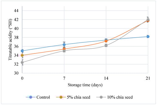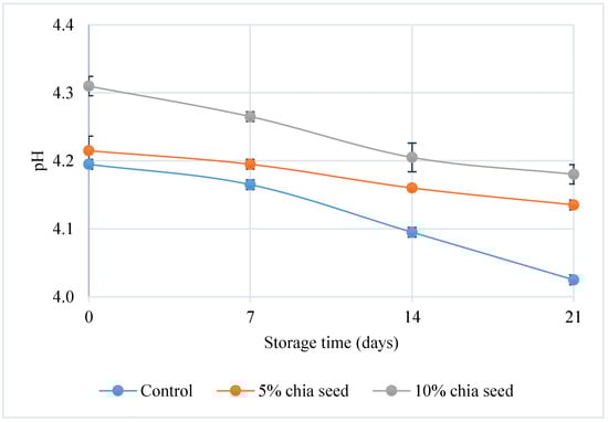 | 5% chia seeds | 8.795 ± 0.007 | 8.740 ± 0.000 | 8.620 ± 0.028 | 8.500 ± 0.141 |
