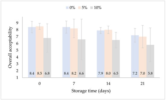 | 10% chia seeds | 8.495 ± 0.007 | 8.370 ± 0.014 | 8.315 ± 0.021 | 8.150 ± 0.212 |
