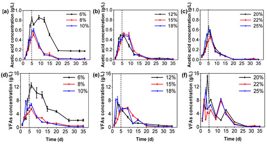 3.4. The Variation in Acetic Acid and VFAs in Tail Vegetables Anaerobic Fermentation