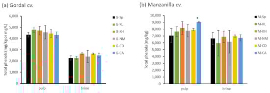 3.2.6. Evaluation of Olive Bitterness by Total Phenol Content Analysis