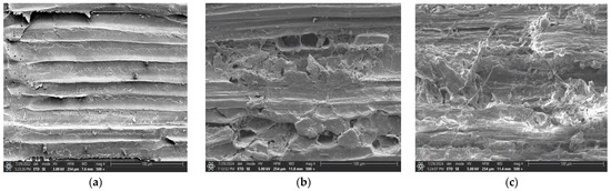 Figure 1 presents scanning electron microscopy (SEM) images of cotton straw. As shown in Figure 1a,b, steam explosion pretreatment increased the specific surface area of cotton straw fibers and disrupted the lignocellulosic structure. Figure 1c demonstrates that after steam explosion combined with solid-state fermentation, the surface of cotton straw became loose and porous, indicating the effective degradation of lignocellulose by synergistic microbial-enzymatic action during solid-state fermentation.
