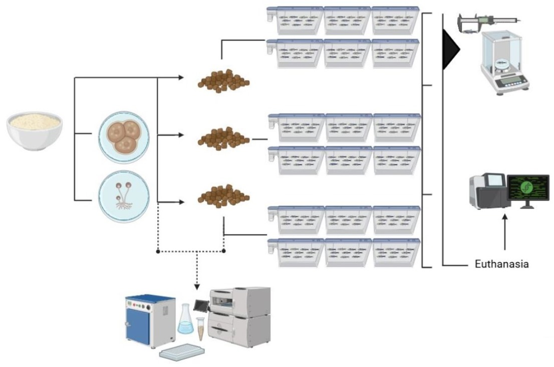 - Lenz, G.; Ayres, T.S.M.; Tesser, M.B.; Christ-Ribeiro, A. Rice bran as an agro-industrial by-product in aquaculture: Types, properties, and applications. Trop. Anim. Health Prod. 2025, 57, 402. [Google Scholar] [CrossRef]